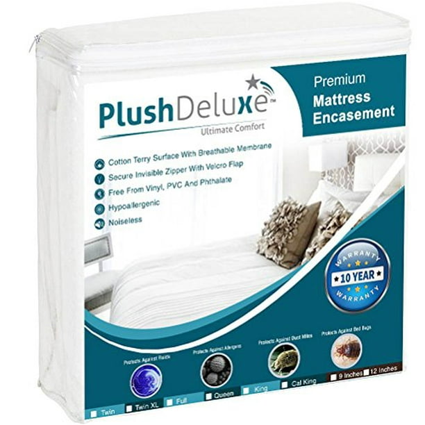 Plushdeluxe Premium Zippered Mattress Encasement Waterproof Bed Bug Dust Mite Proof 6 Sided Protector Cover Hypoallergenic Cotton Terry Surface Fits 9 12 Inches H Queen Walmart Com Walmart Com